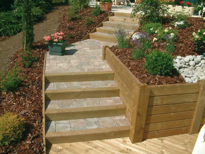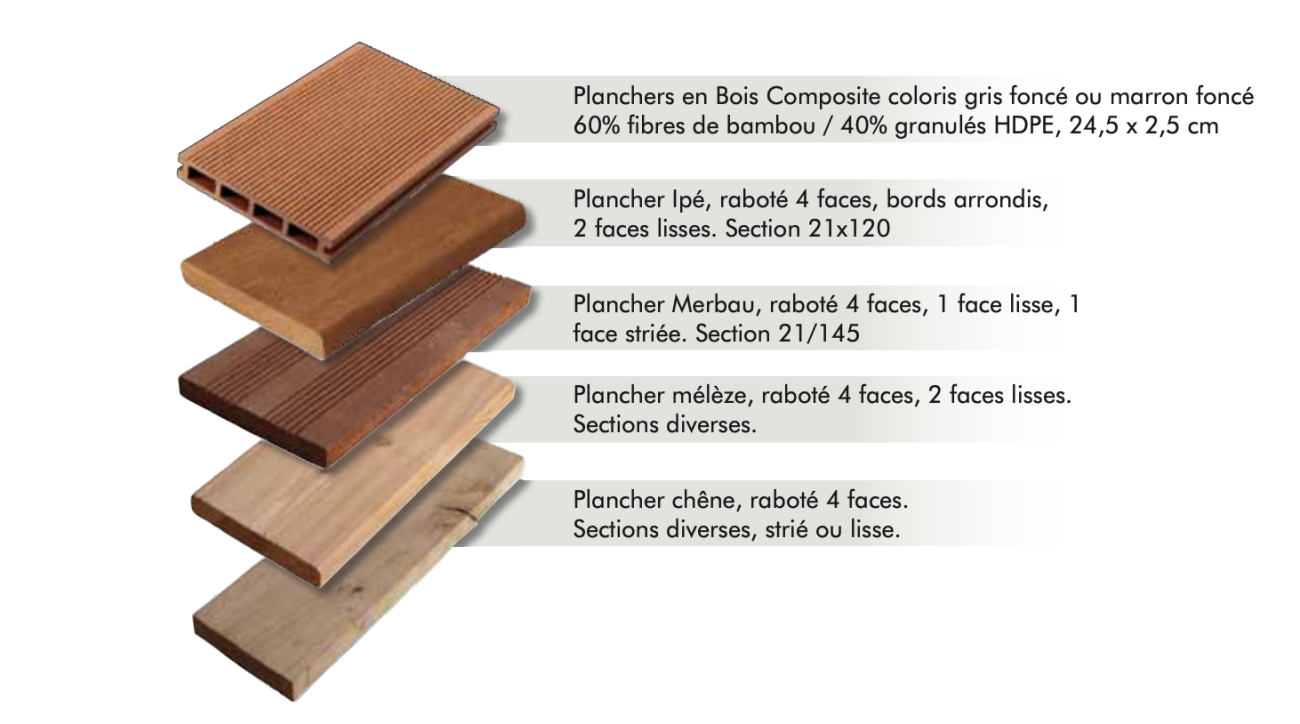Bois rabotés 4 faces, 4 arêtes chanfreinées ou profilées. Essence : pin traité Classe IV.